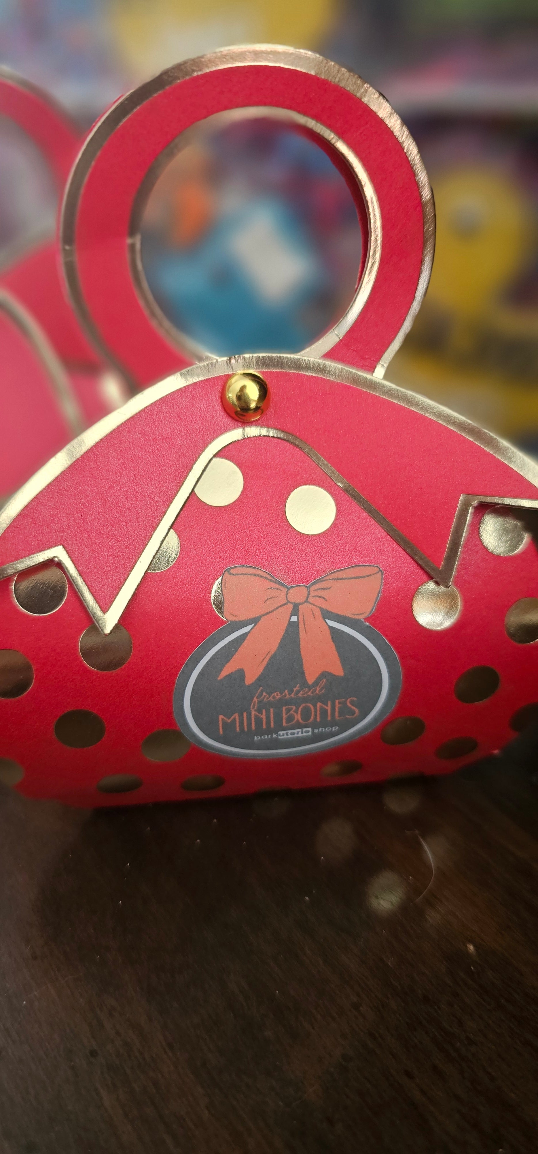 Treat your pup to a touch of elegance! This adorable mini gift set features four yogurt-frosted, hand-decorated mini bones—each a perfect 2 inches of tasty charm. Nestled inside a decorative little purse-style bag, these dainty treats make a delightful surprise for birthdays, gotcha days, or just-because moments. Perfect as a stocking stuffer, a just cuz gift, or employee appreciation gift.